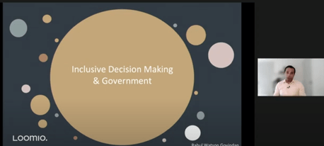 - And at the end we heard from Rahul Watson Govindan, CEO of Loomio - a private sector take on how we can consult, listen, and share power more effectively. Rahul reminded us that we have more power and influence than we think, and talked about principles for inclusive decision making and the hard work that is needed to earn the right to make a decision.