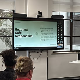 Our first speaker – Pedro Ramirez – set the scene with a really useful summary of the state of the Public Service AI work programme and Usage across Government. From the presentation it was quite clear that the New Zealand Government has a measured and well thought out approach to the adoption and use of AI, focusing on the themes of Enabling (making it easier for Government to use AI), Safe (establishing fundamental guardrails for AI use) and Responsible (ensuring that the public’s trust is maintained in using AI). Pedro talked through the different initiatives across the three themes examples being AI Community of Practice, AI Toolbox (including a Māori perspective), Responsible AI Guidance for the Public Service and AI engagement at a domestic and international level. The presentation was highly interactive, well-paced and well appreciated by the attendees.